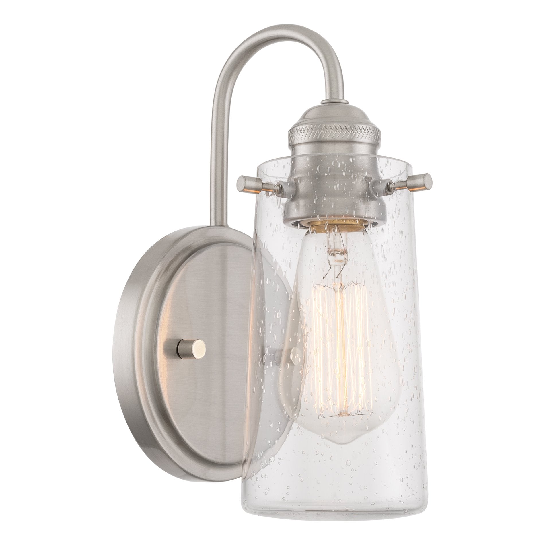 Rayne 9.5' wall sconce features a beautiful brushed nickel finish and standout seeded glass shade. Its modern rustic style makes it an ideal fixture next to bathroom mirrors. Mount near doors in entryways or foyers as the ideal accent lighting. Simple and refined, Rayne easily transitions from one interior style and decor to another ranging from rustic and barnhouse to modern, traditional and industrial. Boasting excellent craftsmanship and quality materials, install this light in your home or in hospitality settings such as hotels, restaurants, bars, and cafes. Need to set the mood? Our light fixture works with standard dimmer switches when paired with compatible bulbs and if you're looking for a vintage look and feel, choose bulbs with an Edison style. At Kira Home, we pride ourselves on exceptional customer service! That is why we provide a 5-year warranty and .Rayne is ETL listed for your safety. We confidently stand behind our quality products but understand issues may occur once in a while, such as damage in transit or defects. Rest assured, we will resolve these issues. Please contact us via email so we can assist you on any necessary replacements or refunds.